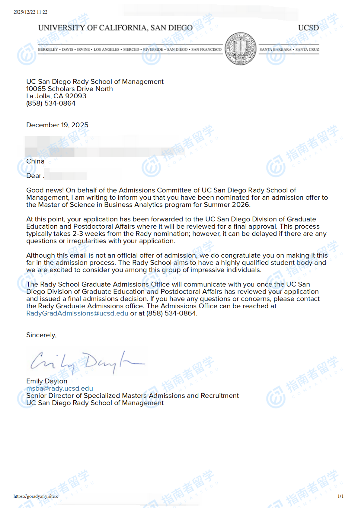 加州大學(xué)圣地亞哥分校商業(yè)分析碩士研究生offer一枚