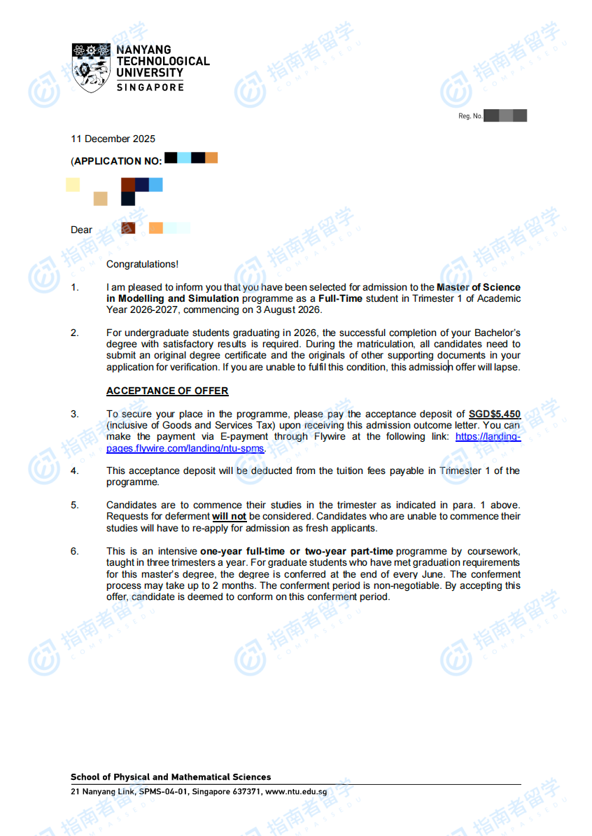 南洋理工大學(xué)建模與仿真理學(xué)碩士研究生offer一枚
