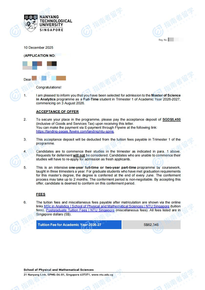 南洋理工大學(xué)分析學(xué)理學(xué)碩士研究生offer一枚